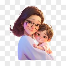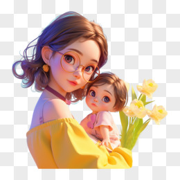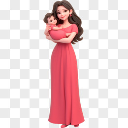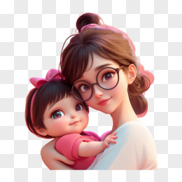 3D卡通妈妈和女儿拿着行李旅行免抠元素