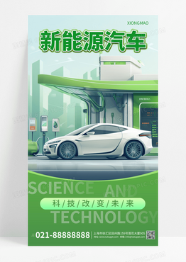 3D卡通绿色新能源汽车在充电桩充电免抠元素