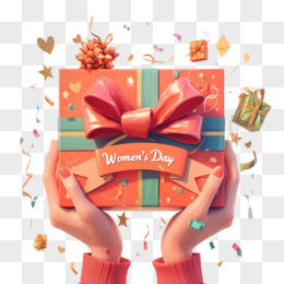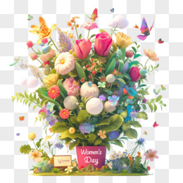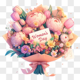3D卡通一束鲜花和women's day贺卡免抠元素