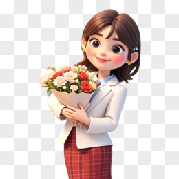 3D立体女职员女白领抱花三八妇女节免抠元素