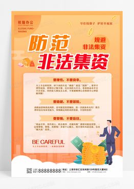 金色渐变背景3D钱袋子防范非法集资防诈骗金融公益海报设计