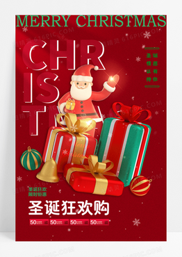 一组矢量膨胀风3D立体圣诞节套图合集元素