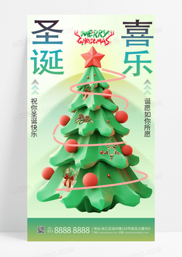 绿色渐变3d圣诞树节日祝福圣诞喜乐手机海报