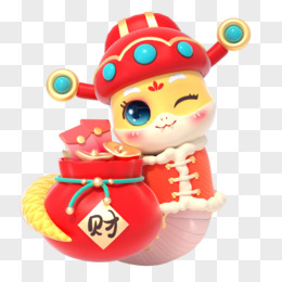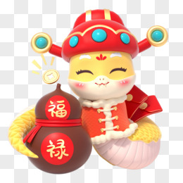 c4d立体卡通蛇年生肖IP抱福袋贺岁形象免抠元素