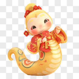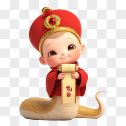 3D立体拟人蛇年IP新年风免抠素材