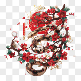 3D风蛇与梅花免抠素材