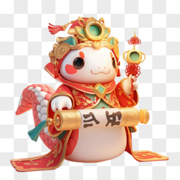 3D立体拟人蛇拿金币新年风免抠素材