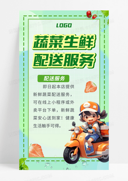 绿色简约蔬果配送服务上门服务蔬果配送服务手机海报