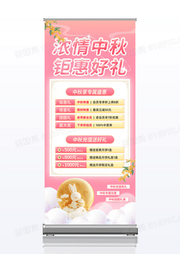粉色清新3D风2025中秋节3d兔子月饼展架