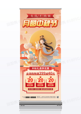 橙色中国风3D月圆中秋节中秋礼遇促销活动展架易拉宝