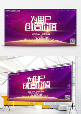 大气红色3D字体为用户创造价值企业文化展板