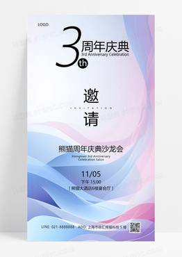大气粉色简约3周年庆典invitation邀请函
