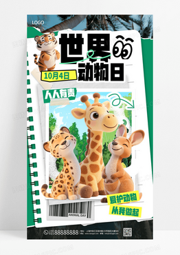 绿色简约10.4世界动物日人与自然和谐宣传海报