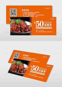橙色50元代金券优惠券抵用券餐饮美食卡券