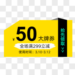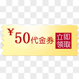 黄色50元优惠券代金券