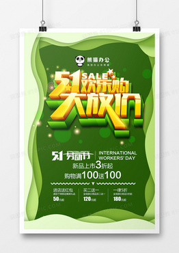 绿色剪纸风51欢乐购大放价创意宣传海报