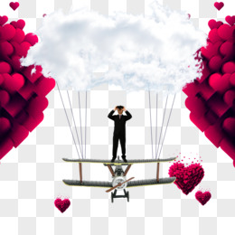 手绘卡通情侣搭乘热气球约会素材