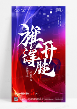 红蓝撞色旗开得胜年终冲刺倒计时5天手机宣传海报