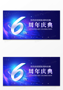 蓝紫色渐变6周年庆周年庆典周年店庆宣传展板