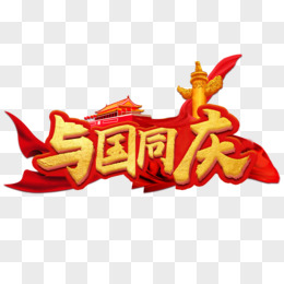 卡通手绘小朋友在草地上庆祝国庆节创意文字免抠元素