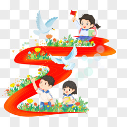 国庆节学生手举红旗庆祝免抠元素