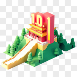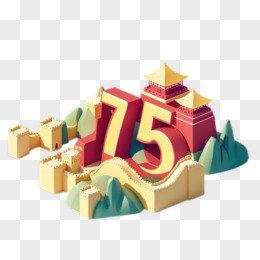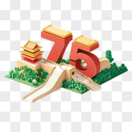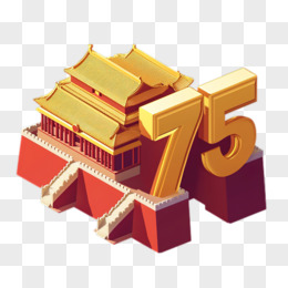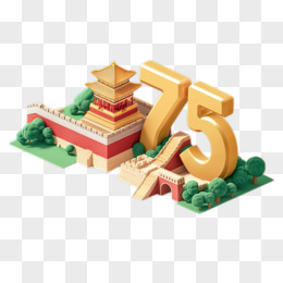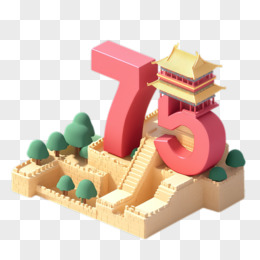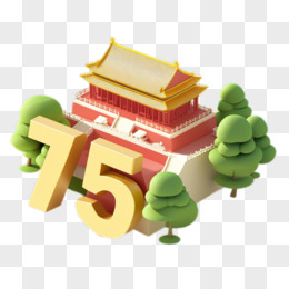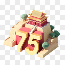 国庆节75周年创意数字中式建筑3d免抠元素