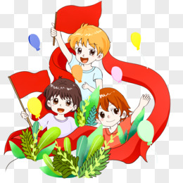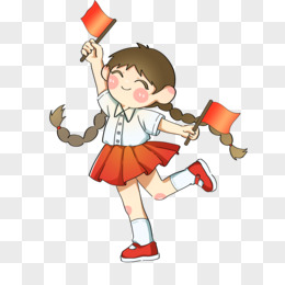 手绘卡通小朋友拿着红旗开心庆祝免抠元素