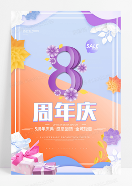 创意酸性立体字8周年庆促销海报