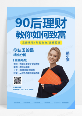 蓝色小清新简约理财直播海报直播课