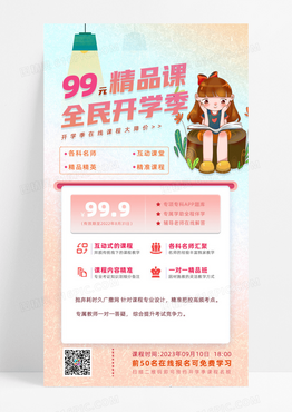 教育培训粉色简约99元精品课全民开学季手机文案海报开学季促销手机宣传海报