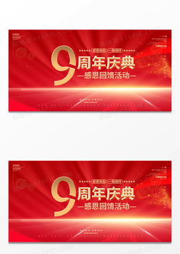 大气红色简约风9周年庆感恩回馈展板9周年店庆展板