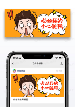 橙色卡通哎呦我的小心脏公众号网络热词配图图片