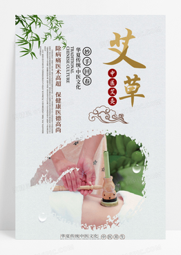 中国风复古艾灸火疗艾草中医海报