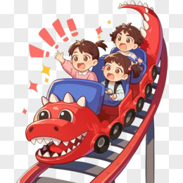 游乐园小朋友玩恐龙过山车免抠元素