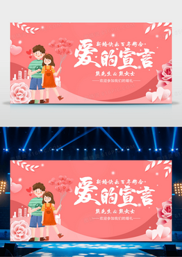 粉色卡通插画情人节爱的宣言展板