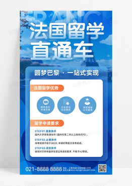 蓝色留学咨询法国留学法国巴黎埃菲尔铁塔宣传海报