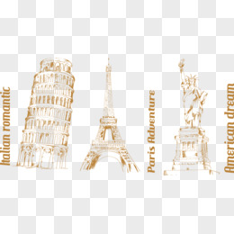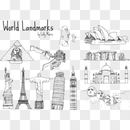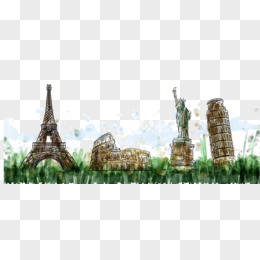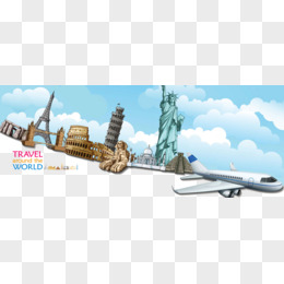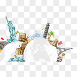 3D卡通穿长裙的女人站在表面都是知名建筑的地球免抠元素