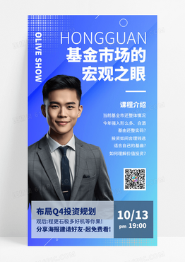 蓝色渐变经济AI人像简约基金市场讲师直播手机海报讲师直播手机文案海报
