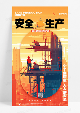 时尚创意油画风2024安全生产月手机宣传海报AI