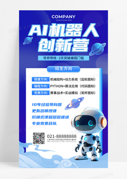 蓝色卡通科技AI机器人创新营人工智能机器人手机海报