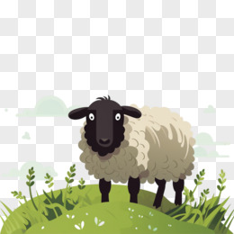 插画可爱小羊在吃草免抠元素