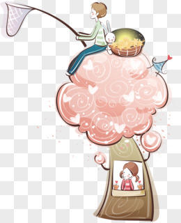 手绘情侣恋爱为爱欢呼场景免抠元素