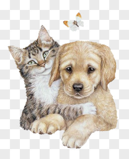 手绘情侣动物猫亲亲素材