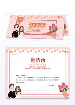 温馨粉色简约大气爱情婚礼邀请函模板设计