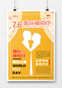 黄色文字世界唯美接吻日海报