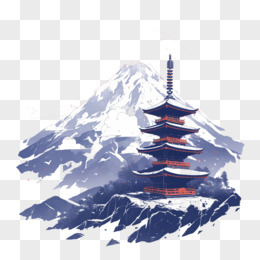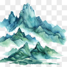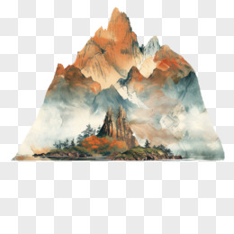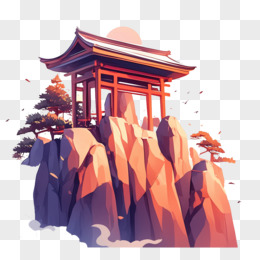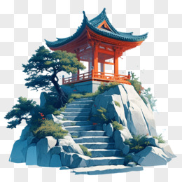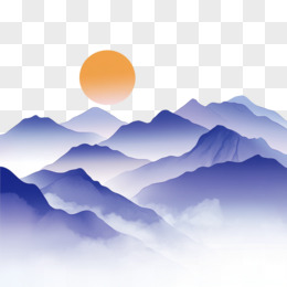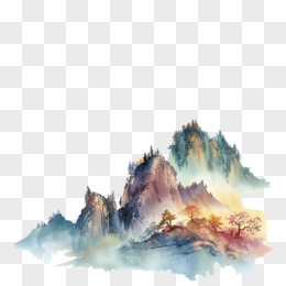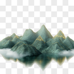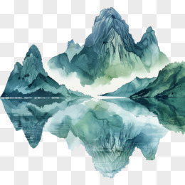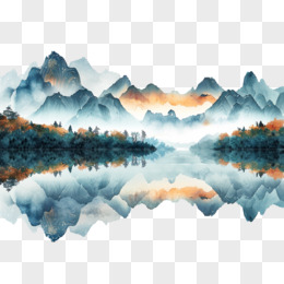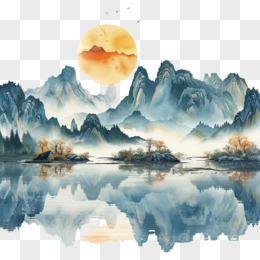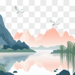 国潮山水画湖泊山脉和丹顶鹤免抠元素