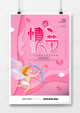 粉色剪影爱神丘比特射箭射向爱心免抠元素