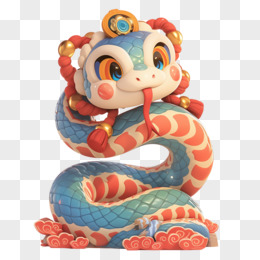 蛇年幸运财宝蛇卡通形象3D免抠元素