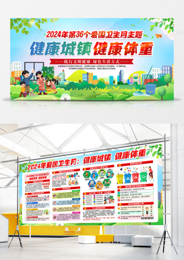 绿色简约健康城镇健康体重爱国卫生月展板宣传