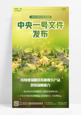 绿色插画2025年中央一号文件发布党政手机宣传海报